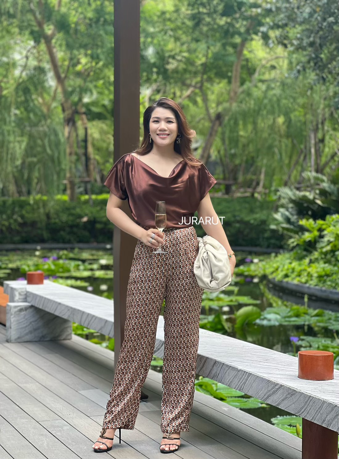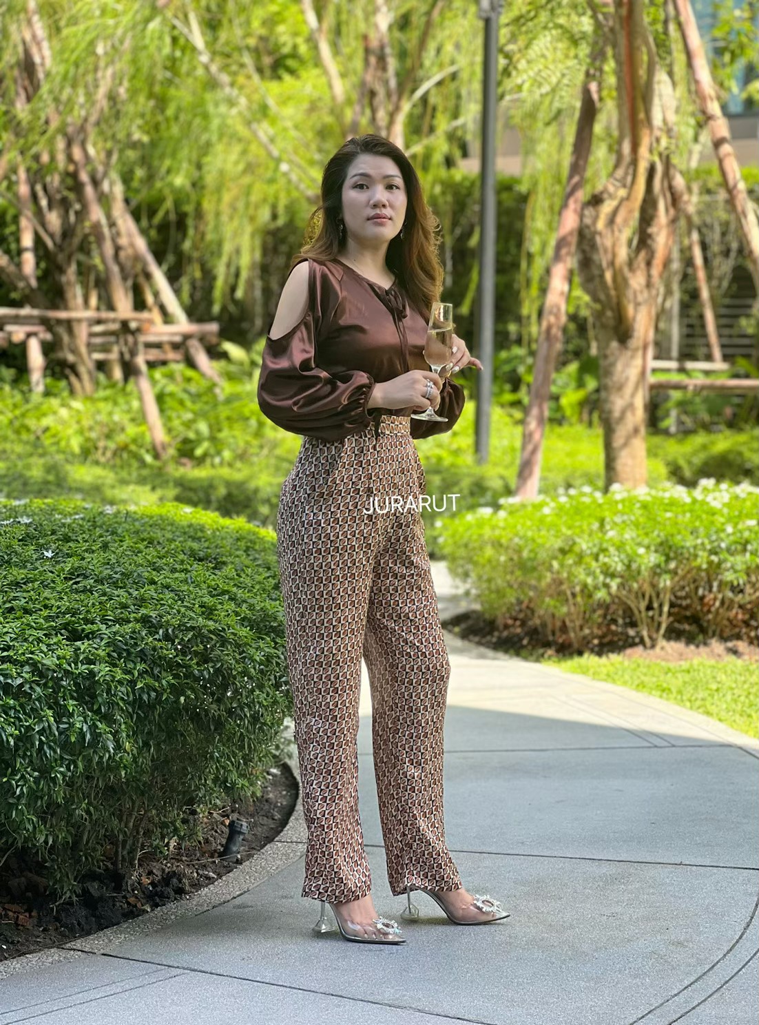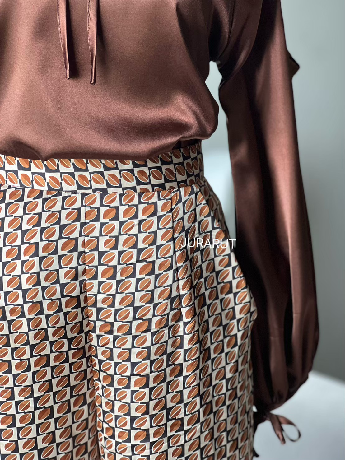 รอบนี้ฝ้ายขึ้นตย.ผ้าลายนี้ แมชกับเสื้อสีพื้น ยิ่งทำให้ดูหรู แพง ลุคมาดามมาเต็มเลยค่ะ