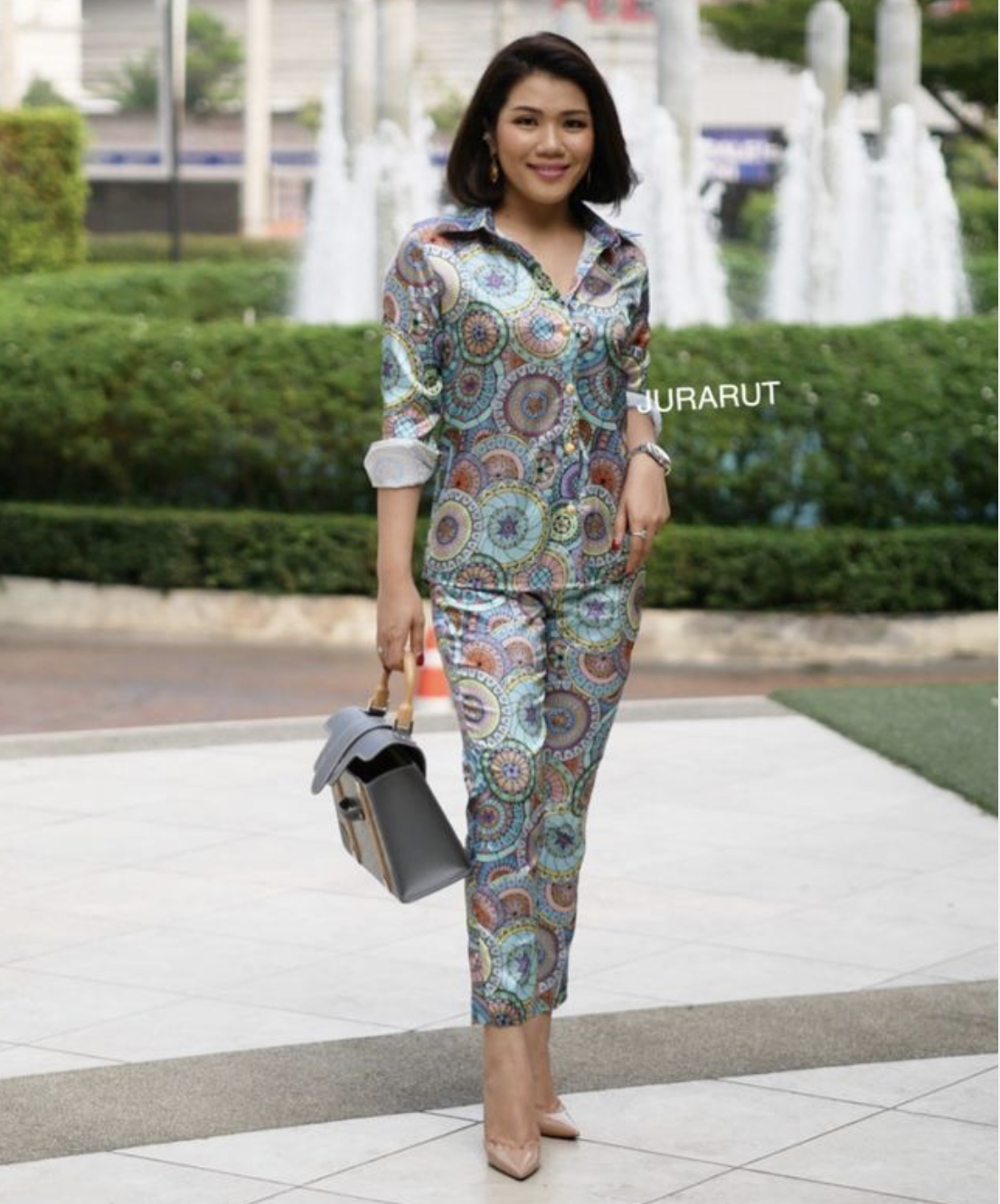 แพทเทิร์นสวย เป๊ะ ตัดกับกระดุมทอง เริ่ดมากเลยค่ะ
