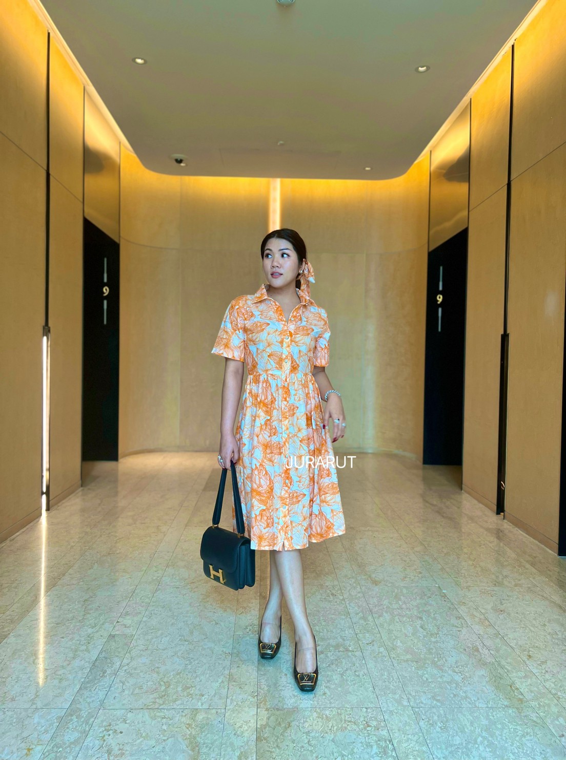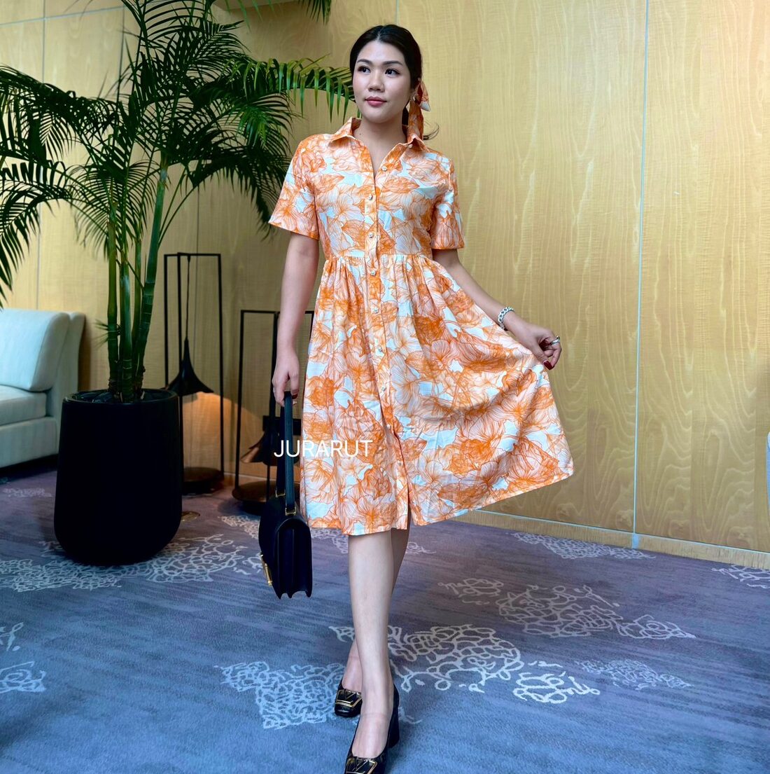 ทรงนี้น่ารัก ขายดีมาก ผ้าคอตตอนสลาฟ เนื้อดีมาก มีน้ำหนัก กระดุมมุกดอกไม้ผ่าหน้า สวมง่ายมากๆ กระโปรงทรงเอ เพิ่มความน่ารักไปอีกแบบ
