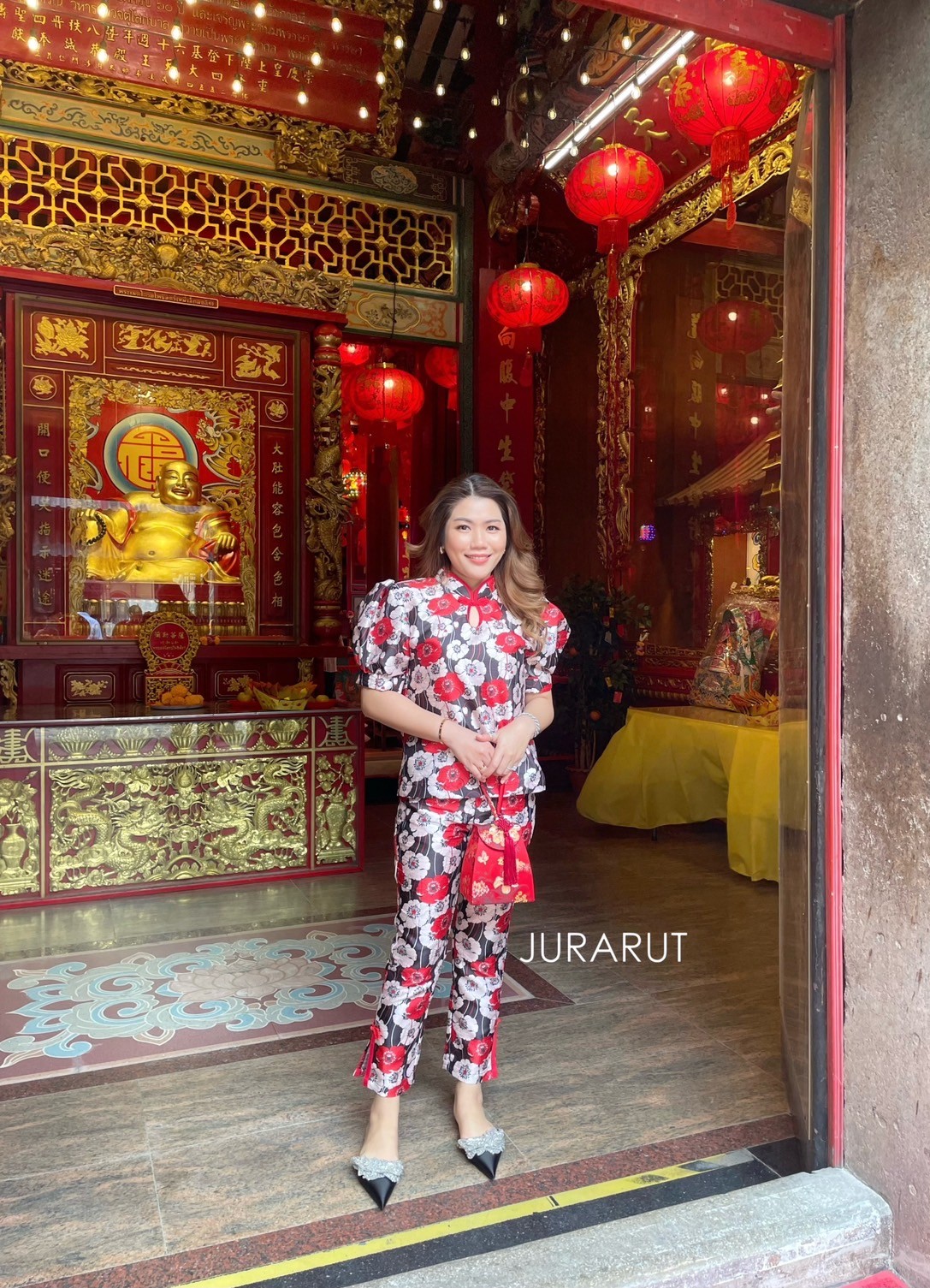 ตัวนี้น่ารักมากค่ะ คอจีนตั้ง หยดน้ำตรงกลางกุ๊นขอบสีพื้นตัดกับลายผ้า แขนตุ๊กตา แมชง่ายมาก แมชยีนส์ก็เก๋
