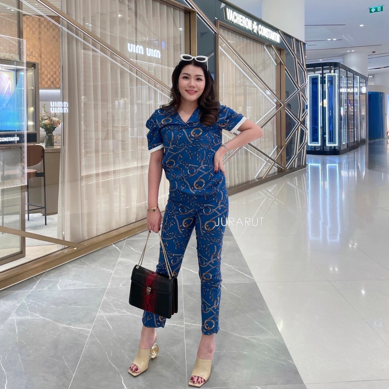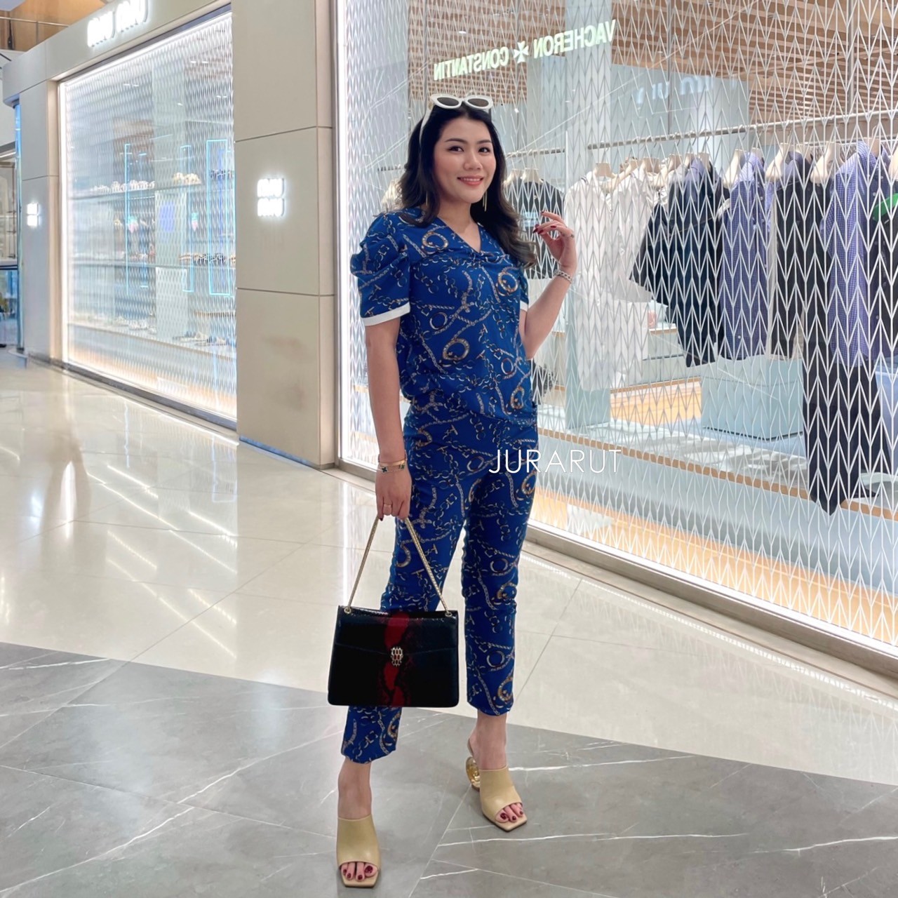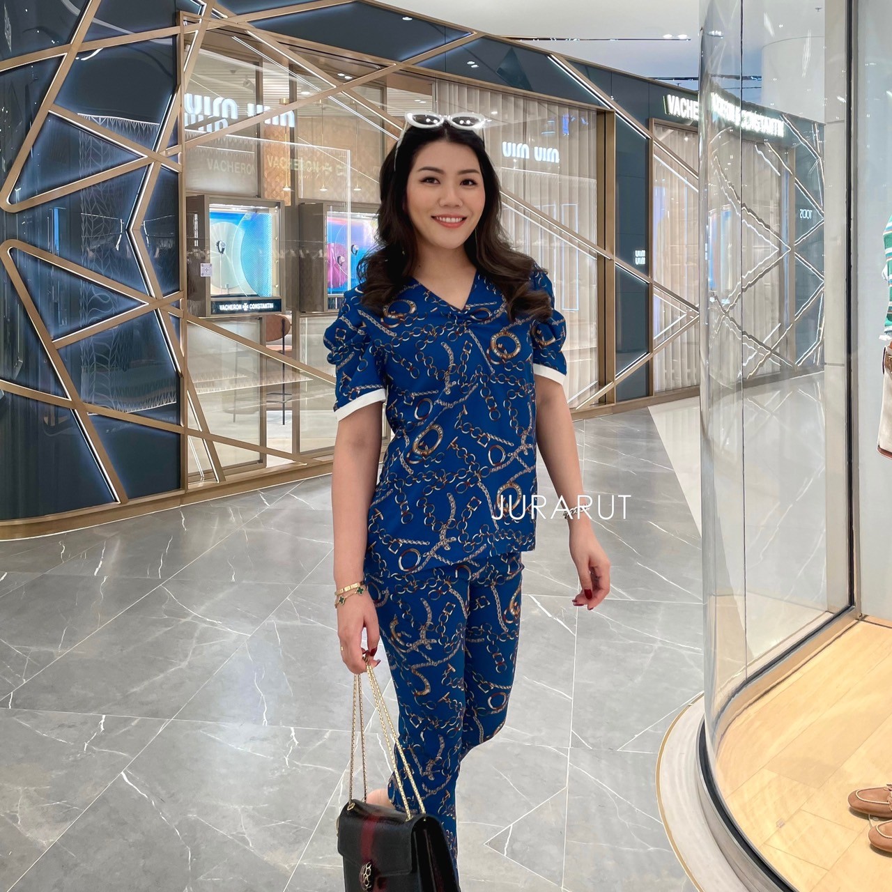 ตัวนี้สวย คอวี จับจีบย่น เพิ่มดีเทลให้เสื้อ ช่วงแขนจับจีบและแต่งสีพื้นตัดขอบขาว เพิ่มความเด่นให้ชุด