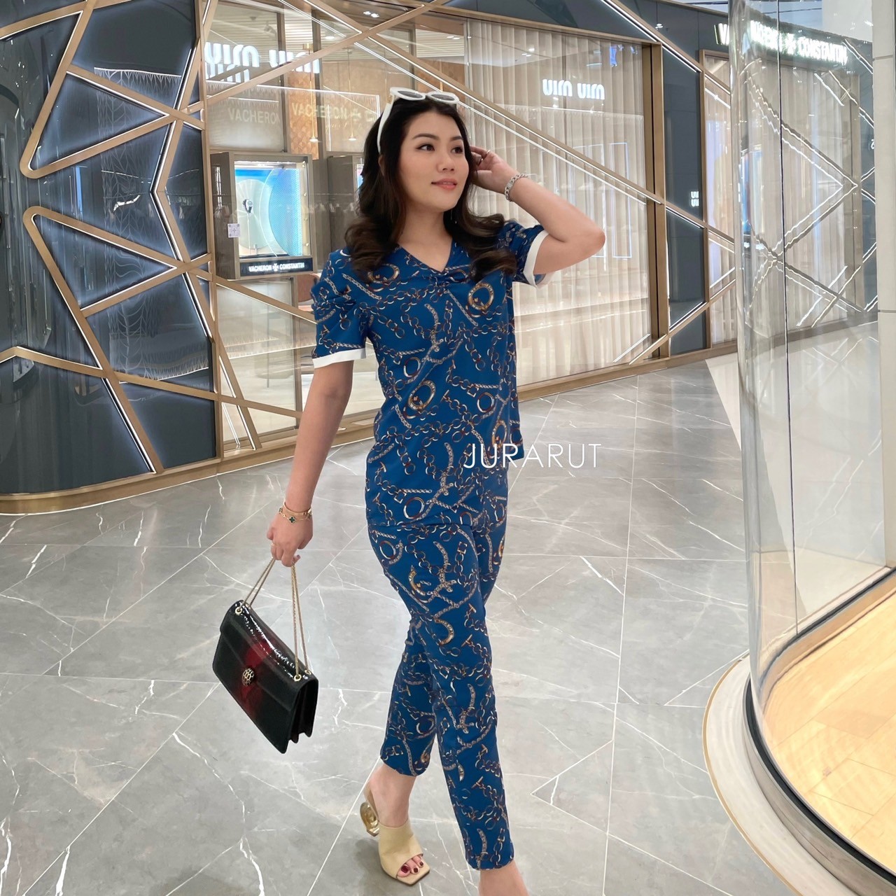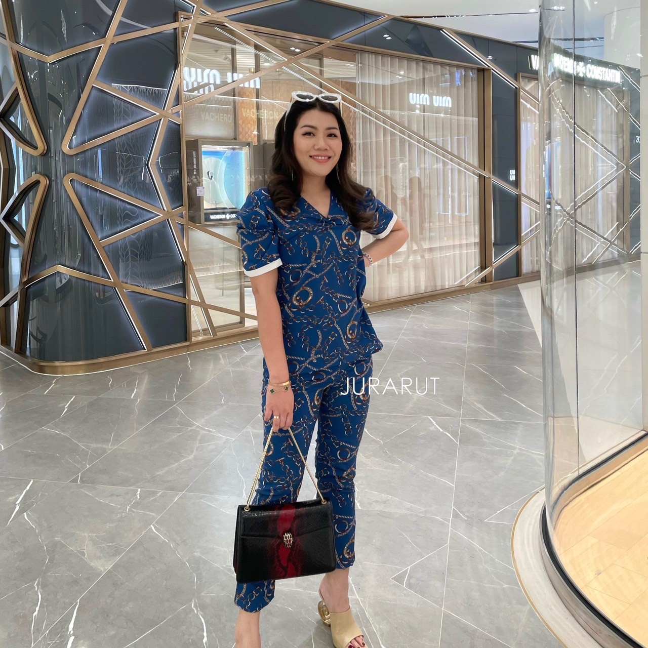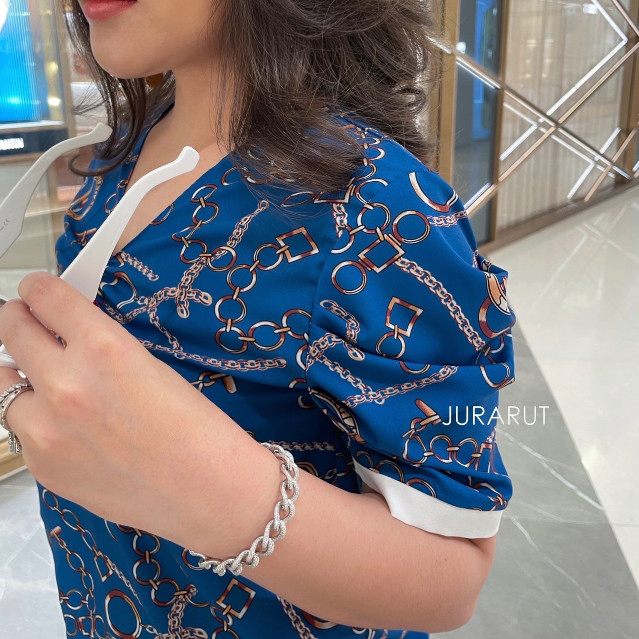 ตัวนี้สวย คอวี จับจีบย่น เพิ่มดีเทลให้เสื้อ ช่วงแขนจับจีบและแต่งสีพื้นตัดขอบขาว เพิ่มความเด่นให้ชุด