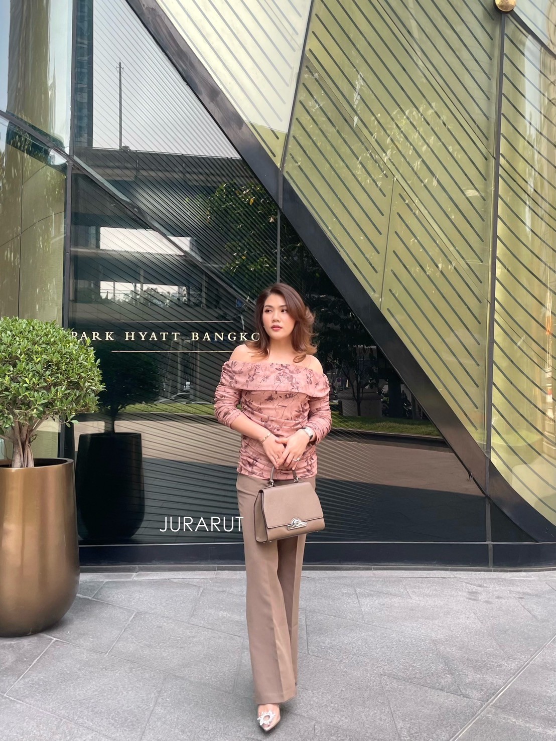 ใส่แล้วหรู มากค่ะความยาวของชุด วัดจากช่วงที่เปิดไหล่นะคะ สีนี้สวยหรู แมชกก.ทรงตรงสีเข้ากันมาก
